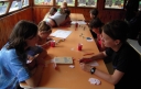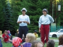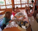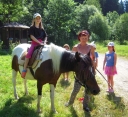 Dopoledne část oddílů se povozila na koních. Další vyráběly masky a jiné batikovaly. Také se děti průběžně osvěžovaly v bazéně. Nezapomněly ani na sport a pohyb.