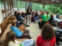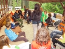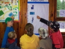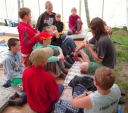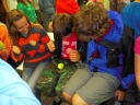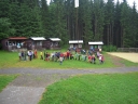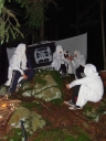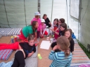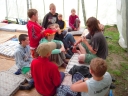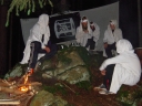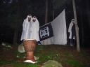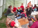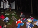 Většina oddílů se odebrala do úkrytů a skrýší a hrály se tu různé hry - od foukané, přes pantomimu až po hádanky.I přes trochu zhoršené počasí zde panuje dobrá nálada. Všichni a všechno je v suchu.
