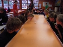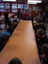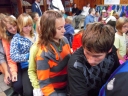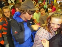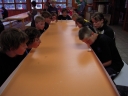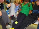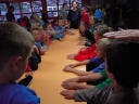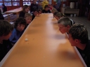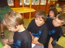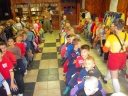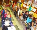 Z důvodu špatného počasí byl Rychlými šípy odvolán závod v běhu na 60 metrů a přesunut. Rychlé šípy zorganizovaly soutěž pěti družstev. První napsal morzeovkou písmeno druhému na záda, ten dalšímu a poslední to zapsal na papír. Bratrstvo kočičí pracky přichystalo bezrukou štafetu, kdy si děti bez pomoci rukou posílaly tenisový míček. Pokud spadl, museli začít znovu. Tato hra se nejvíce líbila juniorům :-) Obě soutěže vyhrály skupiny 6.a 7.klubu. Byly bratrstvem označeny a dostaly sladkou odměnu.