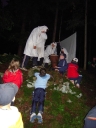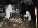 V pondělí 5.7. večer se první oddíl vypravil na dobrodružné přespání pod širým nebem. Po zdolání strmého kopce jsme se my i vedoucí dostali na krásný palouček u lesa s nachystaným "tábořištěm". Aničce se podařilo rozdělat oheň a Péťa nám upekl hady z mouky. Po jídle jsme si u ohýnku zazpívali písničky, zahráli hry a hurá do spacáků. Byly jsme statečné a žádná strašidla jsme neviděly.