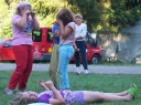 Večer oddíly po horkém dni relaxovaly, sprchovaly se, některé šly na bivak.