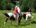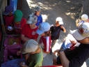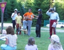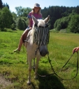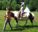 Dopoledne část oddílů se povozila na koních. Další vyráběly masky a jiné batikovaly. Také se děti průběžně osvěžovaly v bazéně. Nezapomněly ani na sport a pohyb.