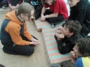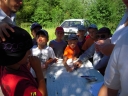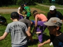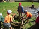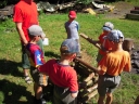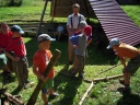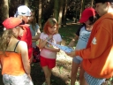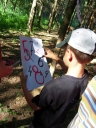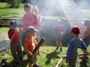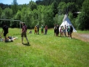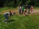 Děti to sice jště netušily, ale celé dopoledne se připravovaly na velký odpolední závod. Trénovaly všechny možné znalosti, ale také si zahrály různé hry nebo rozvíjely výtvarný talent a zručnost. Když jsem procházela táborem, slyšela jsem, že si děti povídají o včerejší události. Pád Jana Tleskače a tajemné vyprávění kostelníka v nich zanechalo hluboký zážitek a také spoustu otázek. (Vališka)