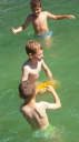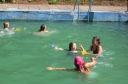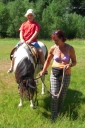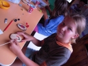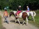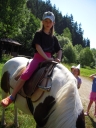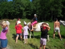 Dopoledne část oddílů se povozila na koních. Další vyráběly masky a jiné batikovaly. Také se děti průběžně osvěžovaly v bazéně. Nezapomněly ani na sport a pohyb.