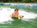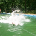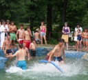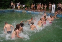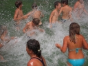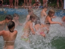 Dnes nejprve některé dívčí oddíly dychtivě rozmotávaly batikované věci, aby viděly, jak se jim to podařilo. Od jedenácti hodin probíhaly u bazénu vodní soutěže, kdy bojovala děvčata proti chlapcům. Rychlošípáci připravili vodní běhací štafetu. Vyhrála v celkovém součtu děvčata. Poté Bratrstvo připravilo cákandu. I v té nakonec vyhrála děvčata. Aby toho nebylo málo, děvčata a chlapci si to rozdali ve vodní bitvě za pomocí waterballů. Jako třešnicku na dortu si vychutnali chlapci z posledního oddílu vodní lyže, které sami poháněli.
