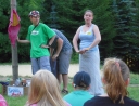 Odpoledne probíhala klubová činnost. V průběhu celého odpoledne děti střídaly hry a koupání vzhledem k vysokým teplotám. Třetí oddíl navlékal korálky.Osmý a desátý oddíl si to vzájemně rozdal v softbale. Nejmenší holčičky stavěly hráze na potůčku. Na večerním nástupu nás překvalily Rychlé šípy, když nám přinesly čerstvě vydané číslo TAM- TAMu.