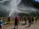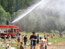 Dnes byl opravdu vydařený den. Hned zrána přijeli páni hasiči. Byli to páni sympatičtí a seznámili nás s hasičskými dovednostmi. Jako překvapení si pro nás připravili mýdlovou pěnu, ve které si celé osazenstvo tábora užilo velikou legraci.