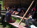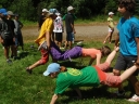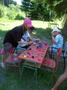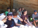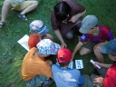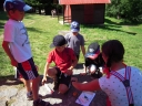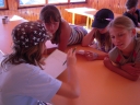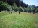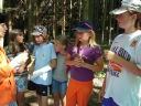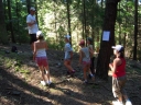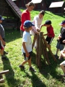 Děti to sice jště netušily, ale celé dopoledne se připravovaly na velký odpolední závod. Trénovaly všechny možné znalosti, ale také si zahrály různé hry nebo rozvíjely výtvarný talent a zručnost. Když jsem procházela táborem, slyšela jsem, že si děti povídají o včerejší události. Pád Jana Tleskače a tajemné vyprávění kostelníka v nich zanechalo hluboký zážitek a také spoustu otázek. (Vališka)