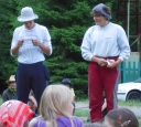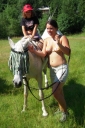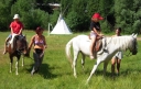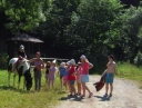 Dopoledne část oddílů se povozila na koních. Další vyráběly masky a jiné batikovaly. Také se děti průběžně osvěžovaly v bazéně. Nezapomněly ani na sport a pohyb.