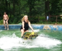 Dnes nejprve některé dívčí oddíly dychtivě rozmotávaly batikované věci, aby viděly, jak se jim to podařilo. Od jedenácti hodin probíhaly u bazénu vodní soutěže, kdy bojovala děvčata proti chlapcům. Rychlošípáci připravili vodní běhací štafetu. Vyhrála v celkovém součtu děvčata. Poté Bratrstvo připravilo cákandu. I v té nakonec vyhrála děvčata. Aby toho nebylo málo, děvčata a chlapci si to rozdali ve vodní bitvě za pomocí waterballů. Jako třešnicku na dortu si vychutnali chlapci z posledního oddílu vodní lyže, které sami poháněli.