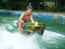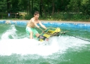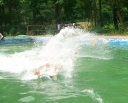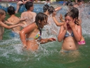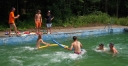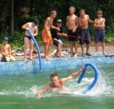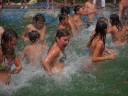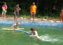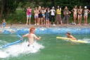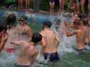 Dnes nejprve některé dívčí oddíly dychtivě rozmotávaly batikované věci, aby viděly, jak se jim to podařilo. Od jedenácti hodin probíhaly u bazénu vodní soutěže, kdy bojovala děvčata proti chlapcům. Rychlošípáci připravili vodní běhací štafetu. Vyhrála v celkovém součtu děvčata. Poté Bratrstvo připravilo cákandu. I v té nakonec vyhrála děvčata. Aby toho nebylo málo, děvčata a chlapci si to rozdali ve vodní bitvě za pomocí waterballů. Jako třešnicku na dortu si vychutnali chlapci z posledního oddílu vodní lyže, které sami poháněli.