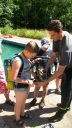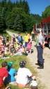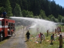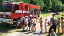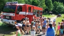 Dnes byl opravdu vydařený den. Hned zrána přijeli páni hasiči. Byli to páni sympatičtí a seznámili nás s hasičskými dovednostmi. Jako překvapení si pro nás připravili mýdlovou pěnu, ve které si celé osazenstvo tábora užilo velikou legraci.
