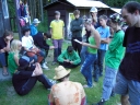 Odpoledne probíhala klubová činnost. V průběhu celého odpoledne děti střídaly hry a koupání vzhledem k vysokým teplotám. Třetí oddíl navlékal korálky.Osmý a desátý oddíl si to vzájemně rozdal v softbale. Nejmenší holčičky stavěly hráze na potůčku. Na večerním nástupu nás překvalily Rychlé šípy, když nám přinesly čerstvě vydané číslo TAM- TAMu.