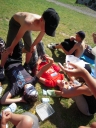 Večer oddíly po horkém dni relaxovaly, sprchovaly se, některé šly na bivak.