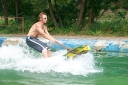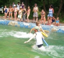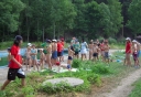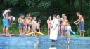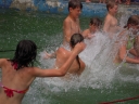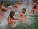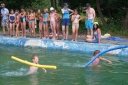 Dnes nejprve některé dívčí oddíly dychtivě rozmotávaly batikované věci, aby viděly, jak se jim to podařilo. Od jedenácti hodin probíhaly u bazénu vodní soutěže, kdy bojovala děvčata proti chlapcům. Rychlošípáci připravili vodní běhací štafetu. Vyhrála v celkovém součtu děvčata. Poté Bratrstvo připravilo cákandu. I v té nakonec vyhrála děvčata. Aby toho nebylo málo, děvčata a chlapci si to rozdali ve vodní bitvě za pomocí waterballů. Jako třešnicku na dortu si vychutnali chlapci z posledního oddílu vodní lyže, které sami poháněli.