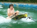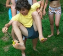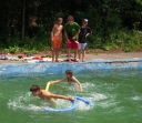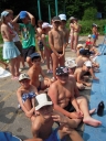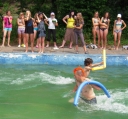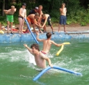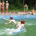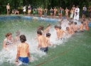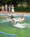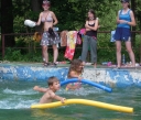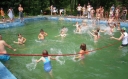 Dnes nejprve některé dívčí oddíly dychtivě rozmotávaly batikované věci, aby viděly, jak se jim to podařilo. Od jedenácti hodin probíhaly u bazénu vodní soutěže, kdy bojovala děvčata proti chlapcům. Rychlošípáci připravili vodní běhací štafetu. Vyhrála v celkovém součtu děvčata. Poté Bratrstvo připravilo cákandu. I v té nakonec vyhrála děvčata. Aby toho nebylo málo, děvčata a chlapci si to rozdali ve vodní bitvě za pomocí waterballů. Jako třešnicku na dortu si vychutnali chlapci z posledního oddílu vodní lyže, které sami poháněli.