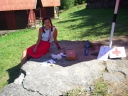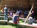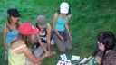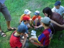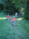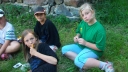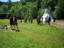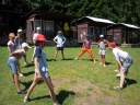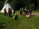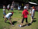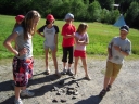 Děti to sice jště netušily, ale celé dopoledne se připravovaly na velký odpolední závod. Trénovaly všechny možné znalosti, ale také si zahrály různé hry nebo rozvíjely výtvarný talent a zručnost. Když jsem procházela táborem, slyšela jsem, že si děti povídají o včerejší události. Pád Jana Tleskače a tajemné vyprávění kostelníka v nich zanechalo hluboký zážitek a také spoustu otázek. (Vališka)