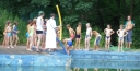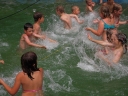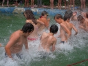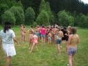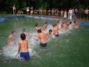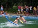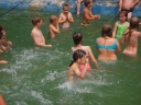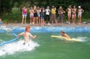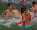 Dnes nejprve některé dívčí oddíly dychtivě rozmotávaly batikované věci, aby viděly, jak se jim to podařilo. Od jedenácti hodin probíhaly u bazénu vodní soutěže, kdy bojovala děvčata proti chlapcům. Rychlošípáci připravili vodní běhací štafetu. Vyhrála v celkovém součtu děvčata. Poté Bratrstvo připravilo cákandu. I v té nakonec vyhrála děvčata. Aby toho nebylo málo, děvčata a chlapci si to rozdali ve vodní bitvě za pomocí waterballů. Jako třešnicku na dortu si vychutnali chlapci z posledního oddílu vodní lyže, které sami poháněli.