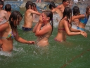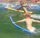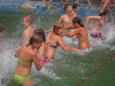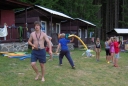Dnes nejprve některé dívčí oddíly dychtivě rozmotávaly batikované věci, aby viděly, jak se jim to podařilo. Od jedenácti hodin probíhaly u bazénu vodní soutěže, kdy bojovala děvčata proti chlapcům. Rychlošípáci připravili vodní běhací štafetu. Vyhrála v celkovém součtu děvčata. Poté Bratrstvo připravilo cákandu. I v té nakonec vyhrála děvčata. Aby toho nebylo málo, děvčata a chlapci si to rozdali ve vodní bitvě za pomocí waterballů. Jako třešnicku na dortu si vychutnali chlapci z posledního oddílu vodní lyže, které sami poháněli.