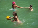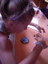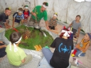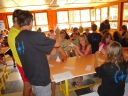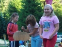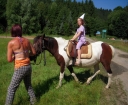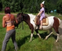 Dopoledne část oddílů se povozila na koních. Další vyráběly masky a jiné batikovaly. Také se děti průběžně osvěžovaly v bazéně. Nezapomněly ani na sport a pohyb.