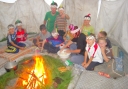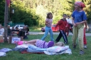 Večer oddíly po horkém dni relaxovaly, sprchovaly se, některé šly na bivak.